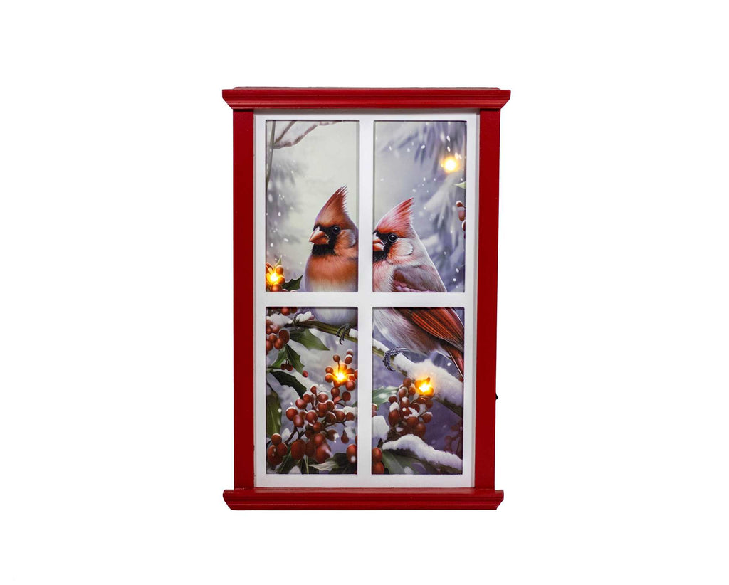 Elevate your space with this expert-crafted Cardinal Canvas Lighted Print, featuring a striking pair of cardinals set against a luminous backdrop. Encased in a rich red wood frame, this artwork combines natural wood tones with vivid imagery, creating a warm and inviting atmosphere. The integrated lighting enhances the intricate details of the cardinals, making it an exquisite focal point for any room. Perfect for bird lovers and collectors seeking both elegance and subtle illumination in their decor.