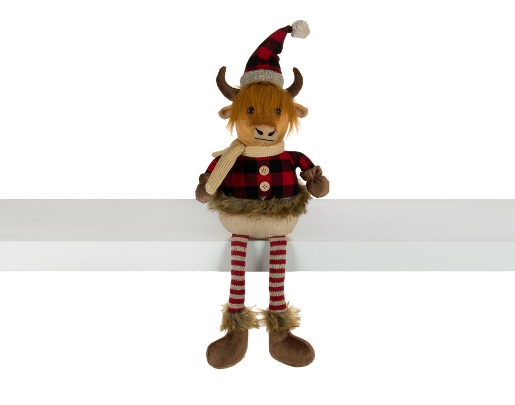 Bring a touch of holiday cheer with the Christmas Highland Cow Figure, dressed in festive plaid to brighten any room. This charming and playful decoration is perfect for