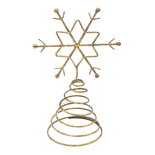 Crafted from durable metal, this Gold Snowflake Tree Topper features a timeless, classic design that adds a radiant finishing touch to your holiday décor. Its sturdy construction ensures lasting use, while the elegant metallic finish reflects light beautifully, enhancing the festive atmosphere of any Christmas tree. Perfect for those seeking a sophisticated and enduring tree topper.