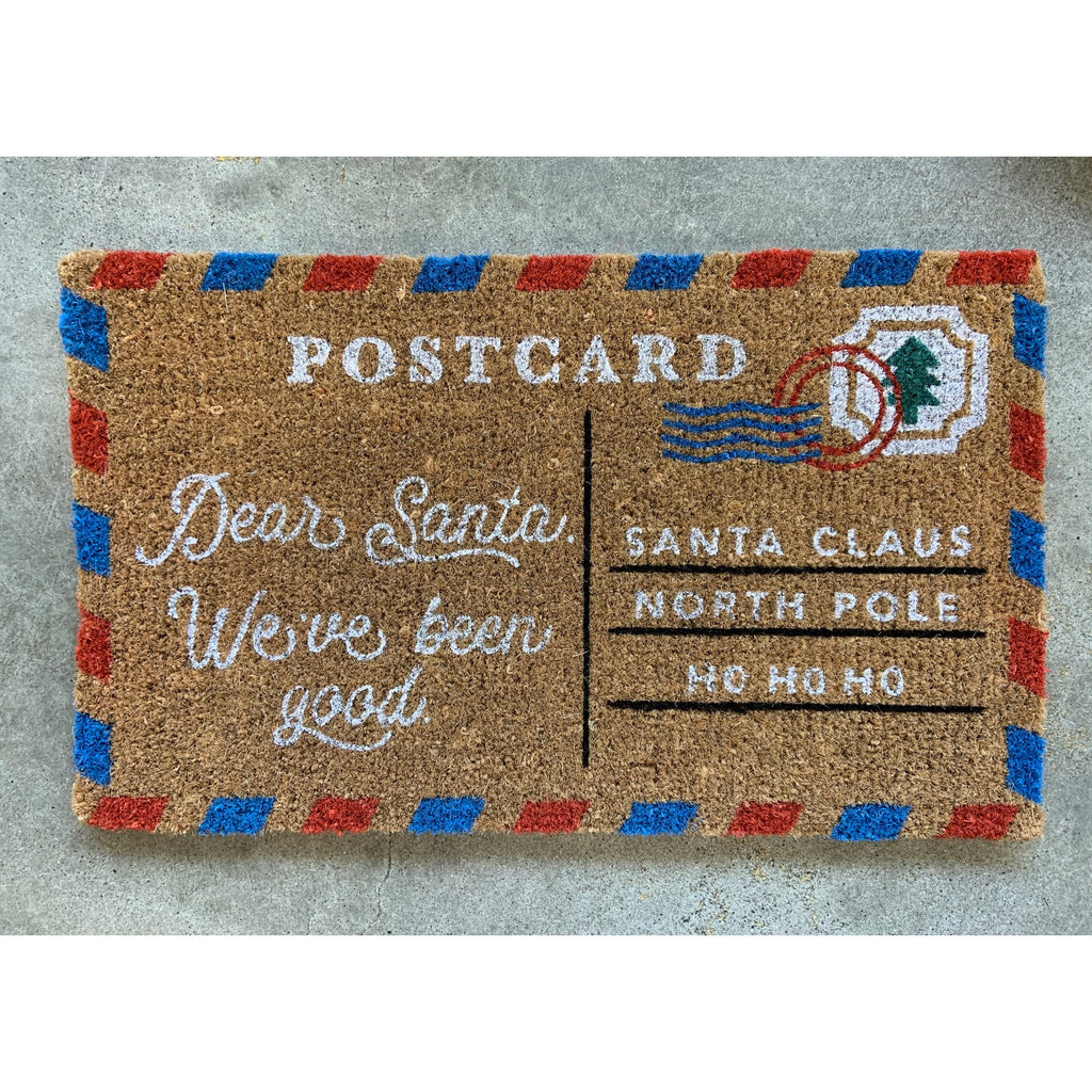 Welcome Santa to your home this Christmas with an adorable postcard themed door mat! Pre-addressed to Santa, with a note that you've been good this season! Designed with a fun red-and-white color scheme, this Danica designed, 100% coir mat is perfect for your front door this holiday!