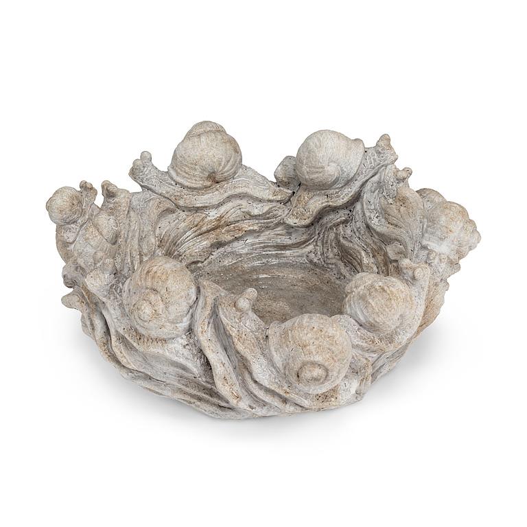Crafted from durable cement with carved snail accents, this shallow bowl is both decorative and functional. Ideal for succulents, moss gardens, or seasonal arrangements, it brings a natural and grounded element to outdoor or indoor spaces.