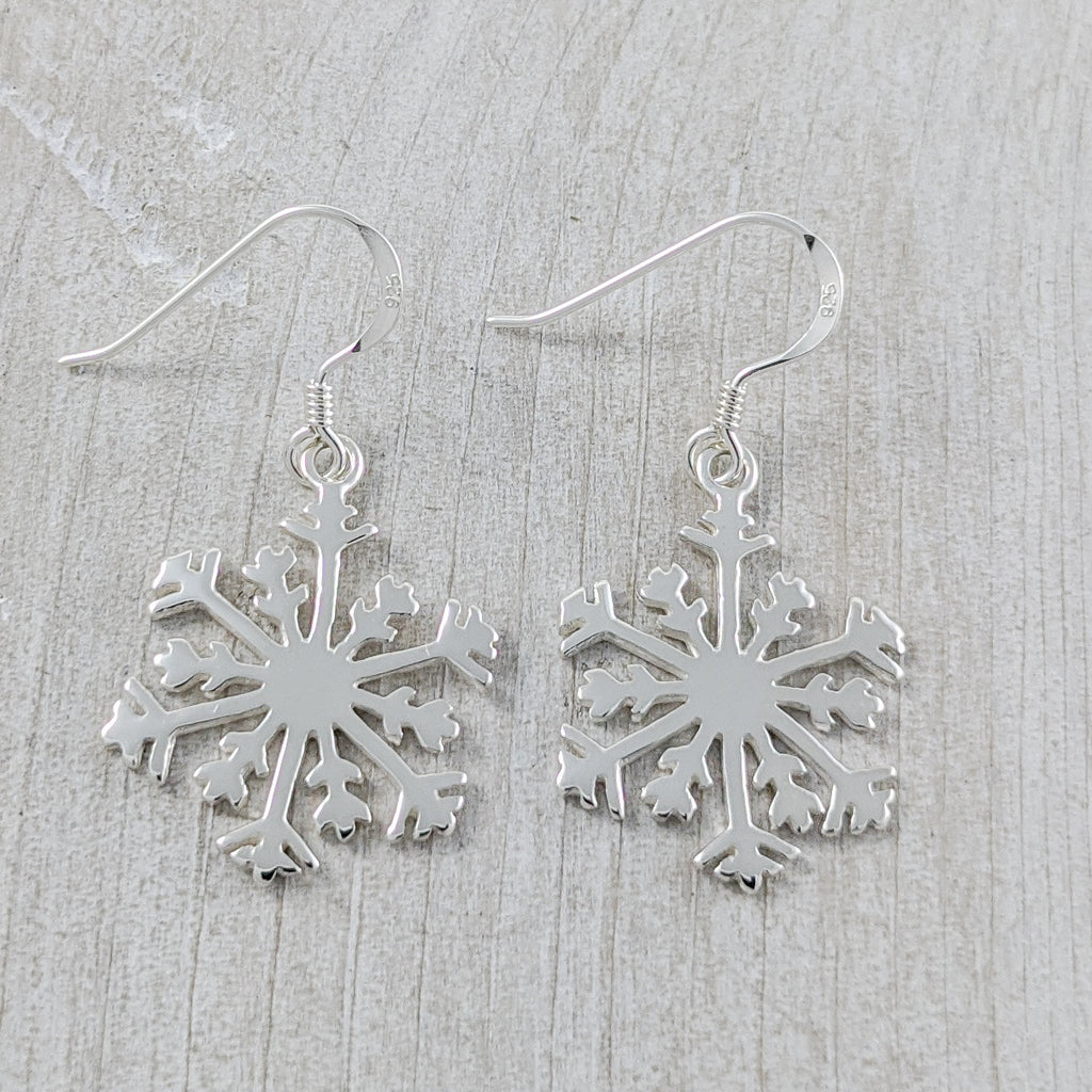 Capture winter's elegance with these sterling silver snowflake drop earrings. Crafted from .925 sterling silver, each piece features a lustrous, shiny finish that catches the light beautifully. The delicate snowflake design brings festive seasonal charm to any occasion, whether you're dressing up for holiday gatherings or adding a touch of winter sophistication to everyday wear. A timeless accessory that celebrates the season with refined style.