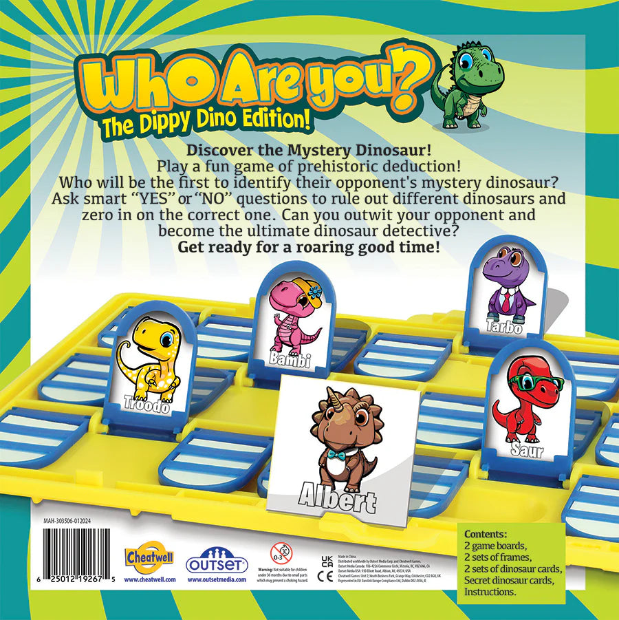 Discover the Mystery Dinosaur! Play a fun game of prehistoric deduction! Who will be the first to identify their opponent's mystery dinosaur? Ask smart "YES" or "NO" questions to rule out different dinosaurs and zero in on the correct one. Can you outwit your opponent and become the ultimate dinosaur detective? Get ready for a roaring good time!